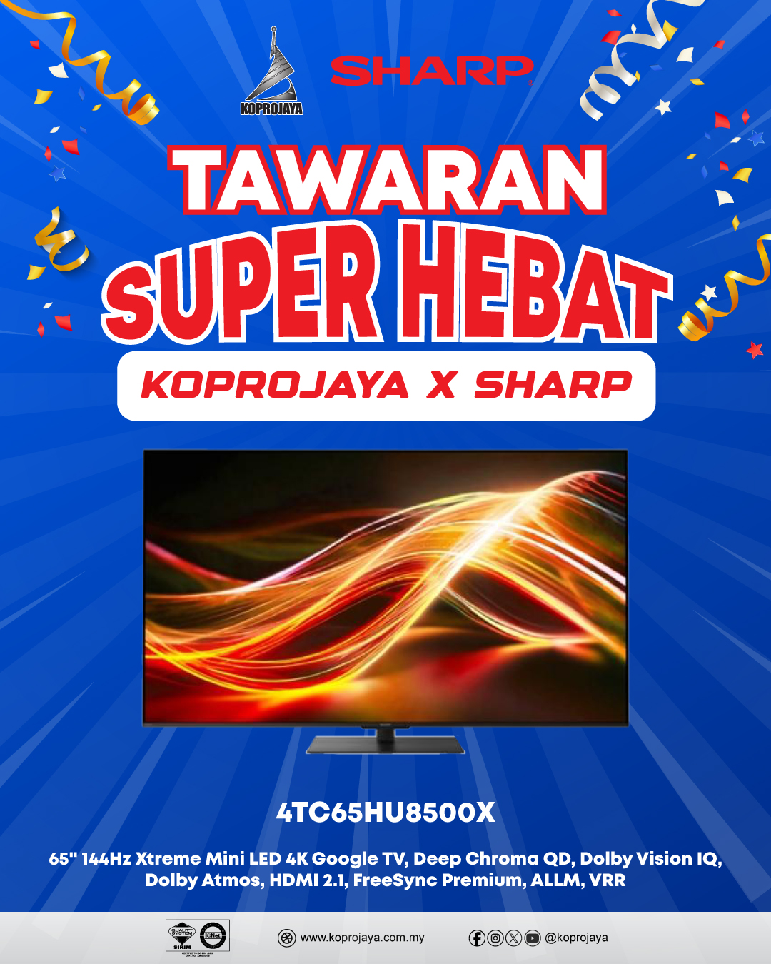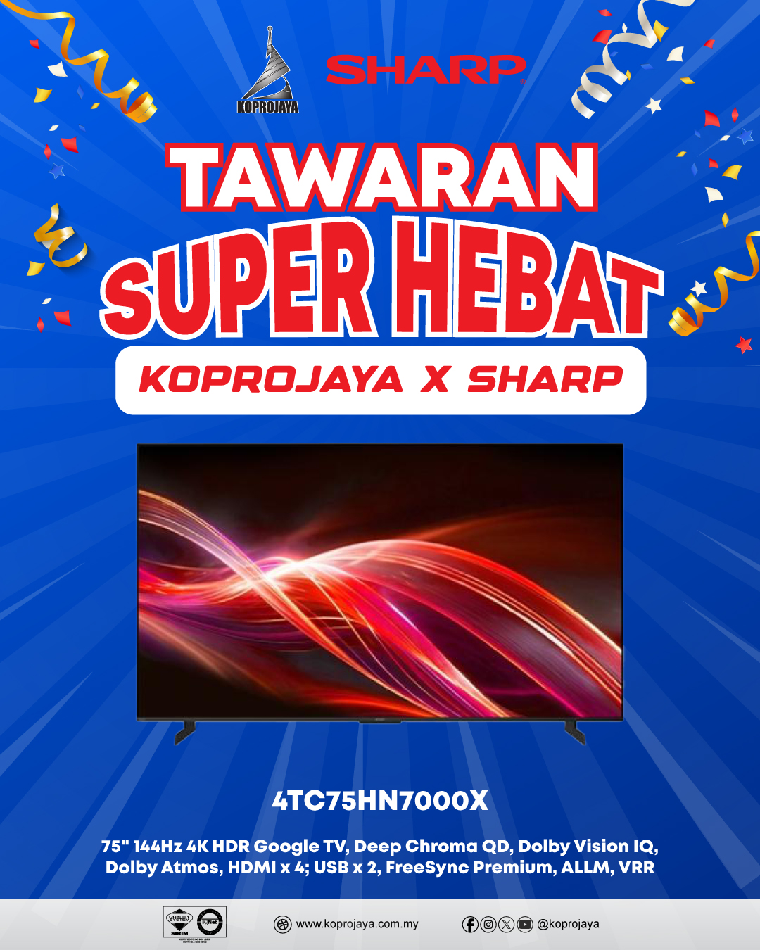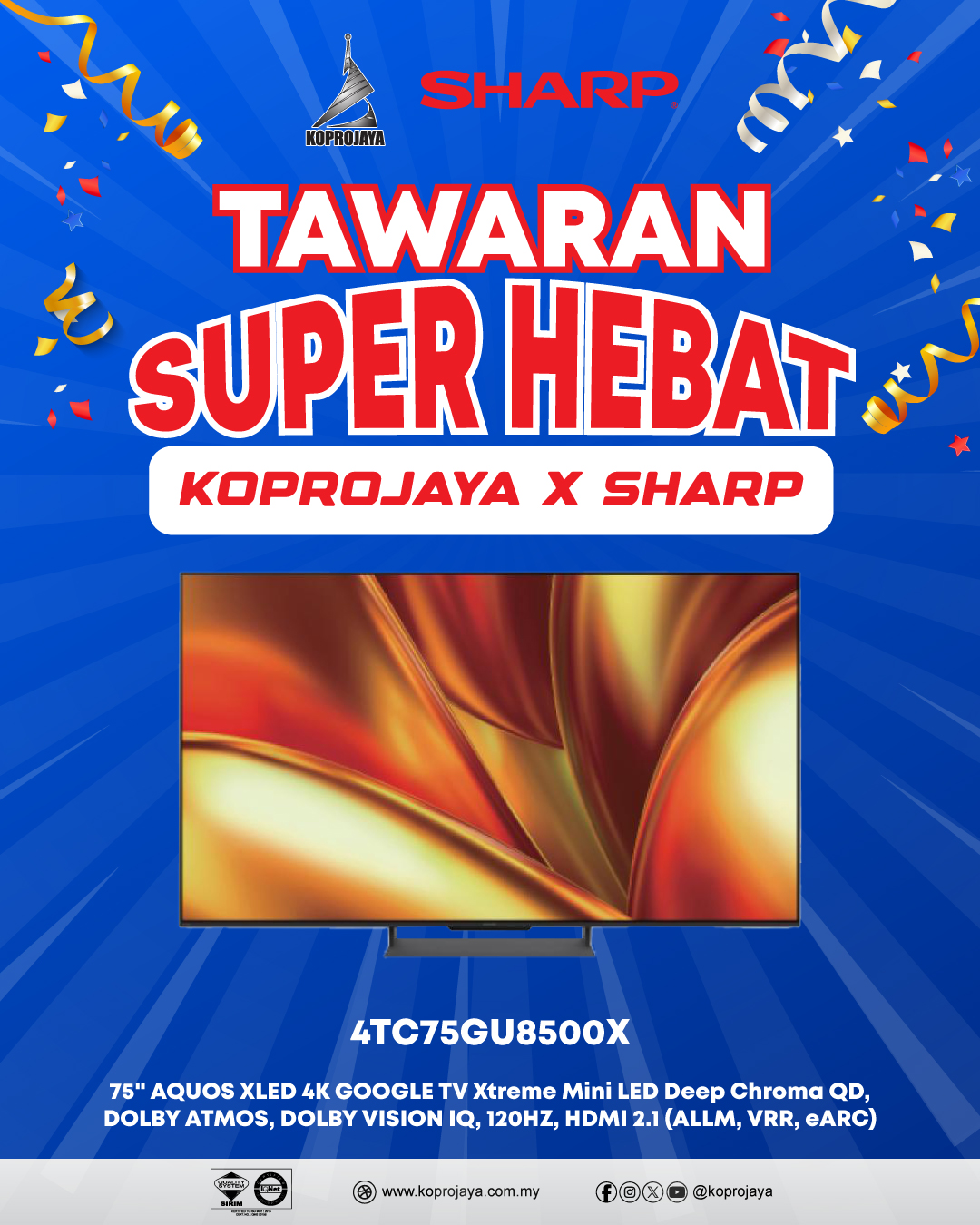 | 18 | 4TC75GU8500X | 7,399.00 | 3,939.00 | 3,545.10 | 75″ AQUOS XLED 4K GOOGLE TV Xtreme Mini LED Deep Chroma QD, DOLBY ATMOS, DOLBY VISION IQ, 120HZ, HDMI 2.1 (ALLM, VRR, eARC) | |||||||