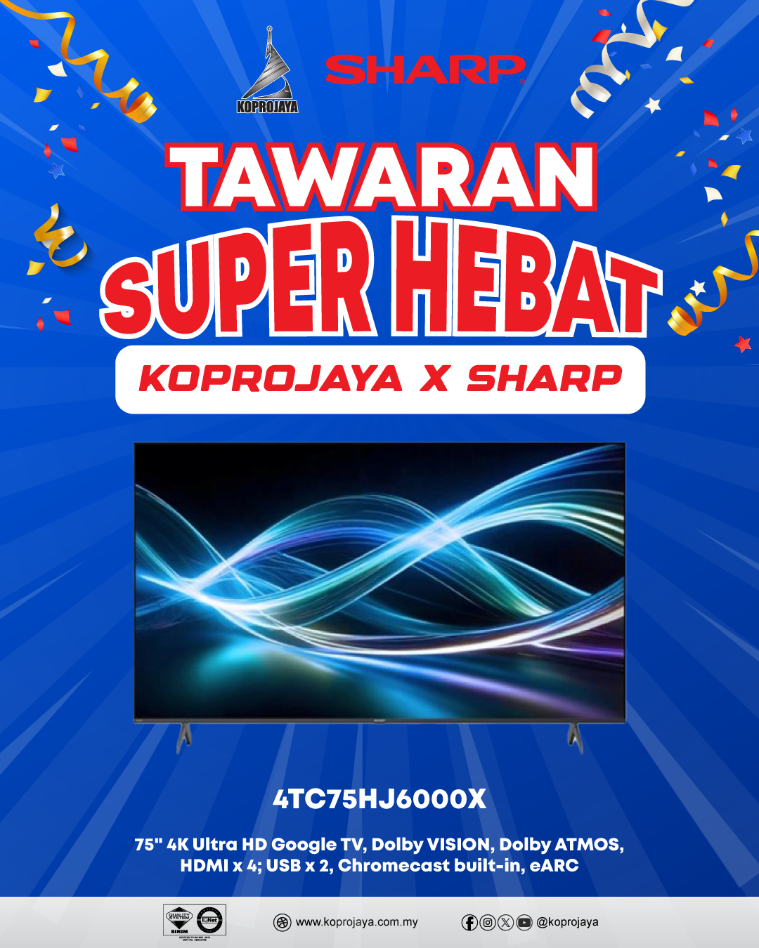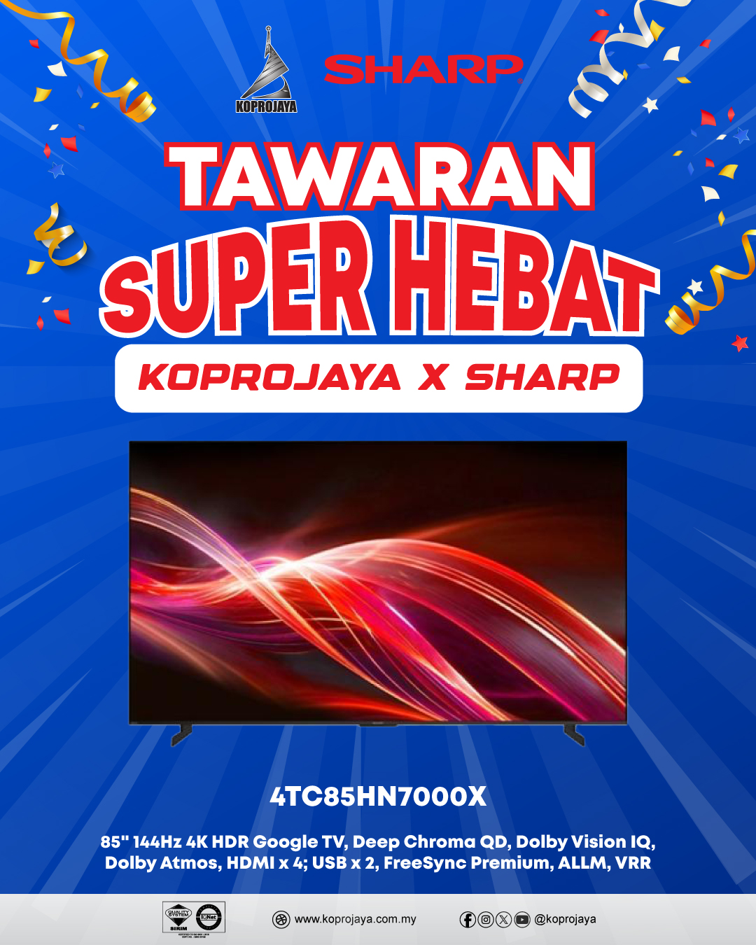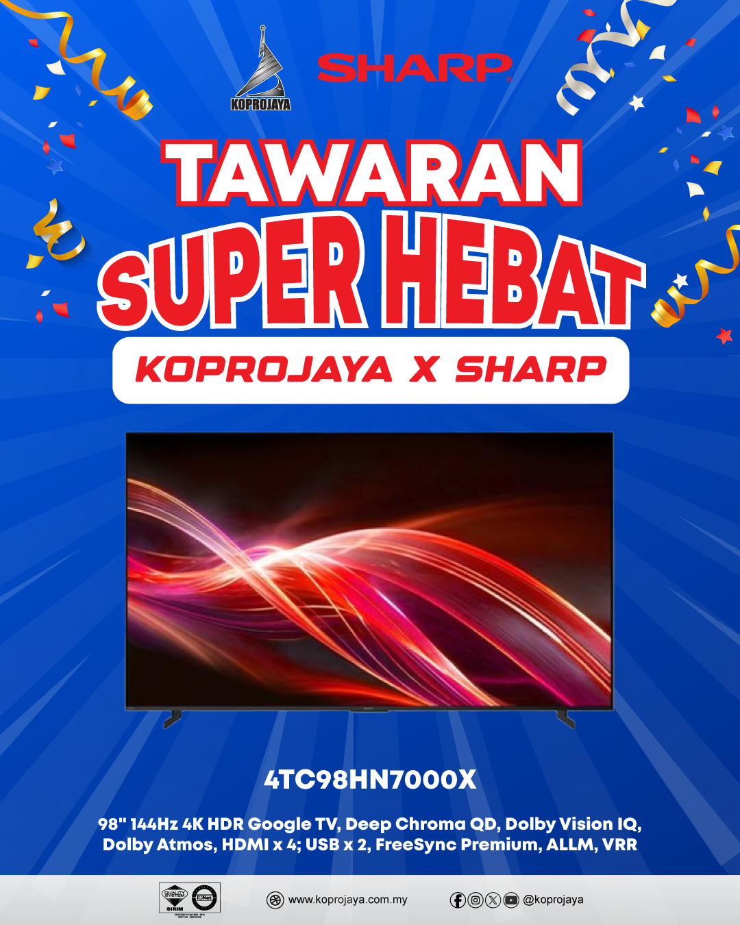 | 18 | 4TC75GU8500X | 7,399.00 | 3,939.00 | 3,545.10 | 75″ AQUOS XLED 4K GOOGLE TV Xtreme Mini LED Deep Chroma QD, DOLBY ATMOS, DOLBY VISION IQ, 120HZ, HDMI 2.1 (ALLM, VRR, eARC) | |||||||